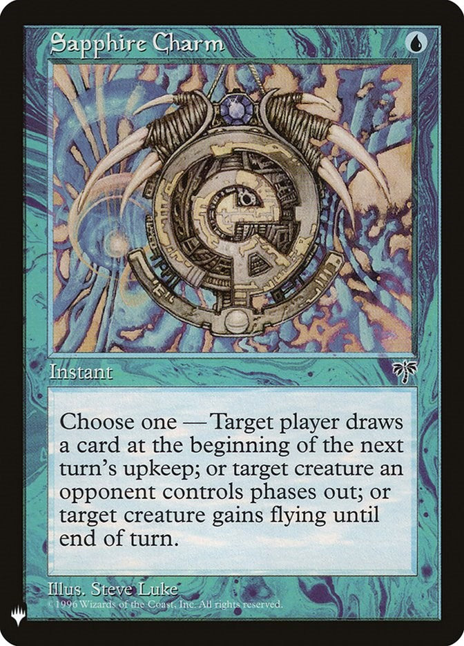 - Rules Text Contains: Choose one — Target player draws a card at the beginning of the next turn’s upkeep; or target creature an opponent controls phases out; or target creature gains flying until end of turn.